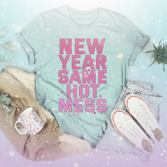 Women's Merry and Bright Pink and Green Christmas Holiday Winter Season Tee Shirt