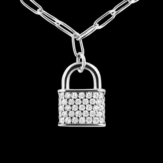 .925 Sterling Silver 1/4 Cttw Diamond Lock Pendant Necklace With Paperclip Chain