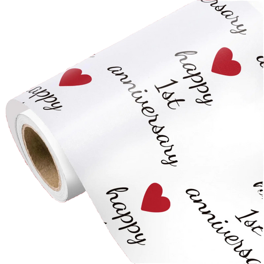 "Happy 1st Anniversary" Gift Wrap Roll for Anniversary Presents Red Heart Print