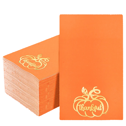 100 PCS Thanksgiving Pumpkin Paper Napkins - Heavy Duty - Orange Disposable Hand Towels for Fall Friendsgiving Dinner Party Bathroom Decoration