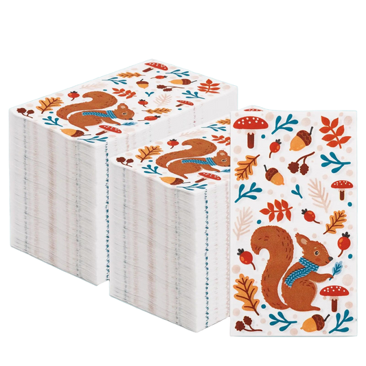 100 PCS Thanksgiving Napkins Disposable Squirrel Napkins 3-Ply Disposable Hand Towels Autumn Elements Napkins Harvest Party Supplies