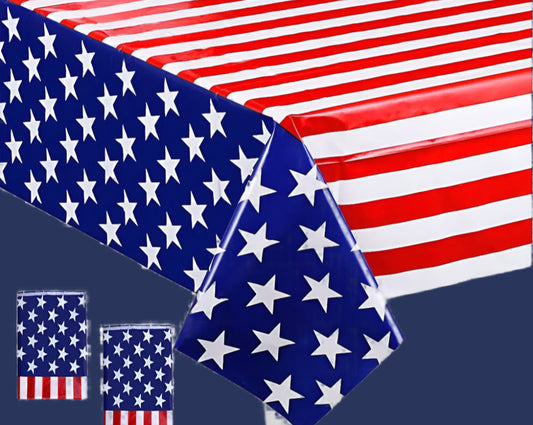 (Pack of 2) Red, White and Blue American Flag 4th of July Patriotic Party Disposable Tablecloth