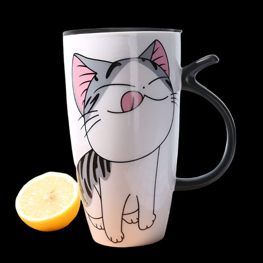 Cute Cat Making Funny Faces with Cat Tail Handle Coffee Mug Gift for Cat Lovers