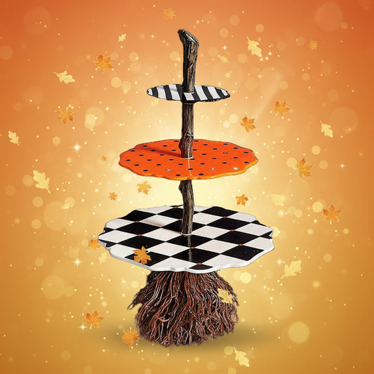 Halloween Party Standing Broom or Witch Cauldron Serving Bowl Table Decor Cupcake Plate or Treat Plate Resin Decoration