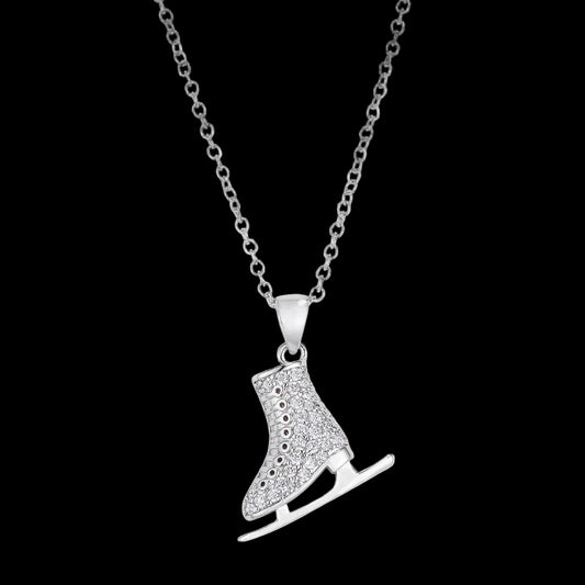 Delicate .4Ct Rhodium Plated Ice Skate Pendant