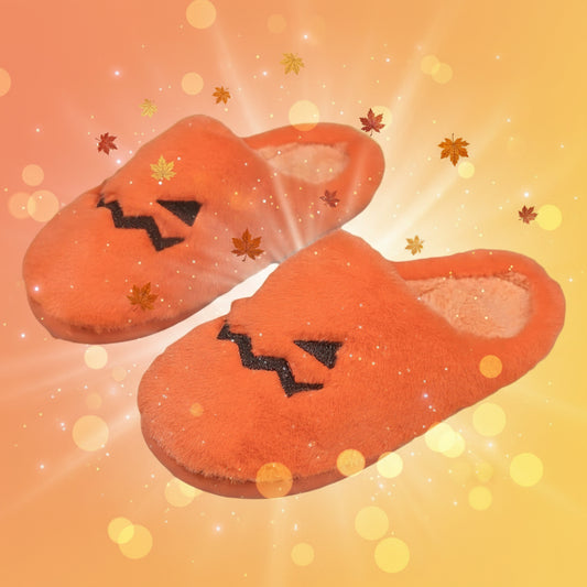 Halloween Carved Pumpkin Fuzzy House Slippers