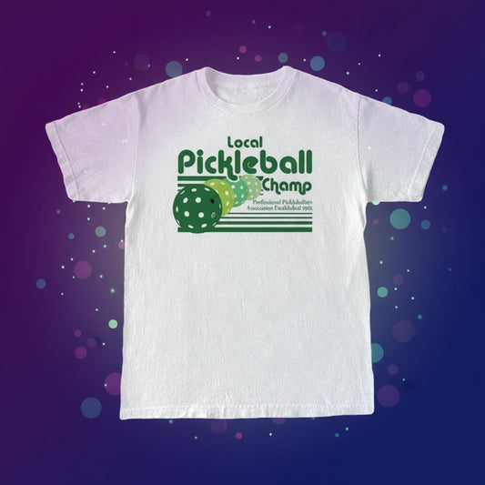 Local Pickleball Champ Retro Funny Pickleball Lover Cotton T-Shirt Short Sleeve