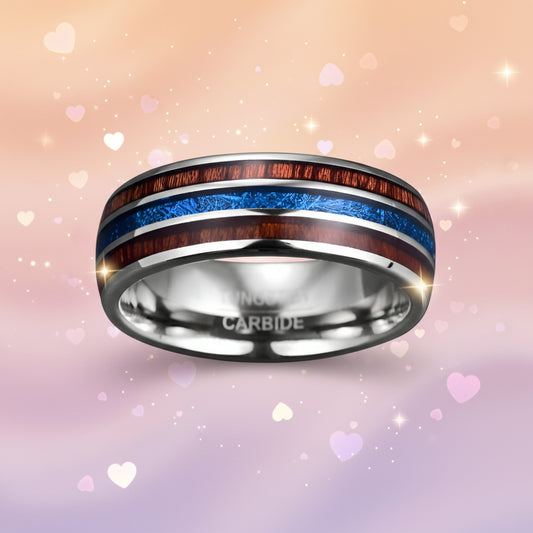 Men's Jewelry Gift Silver, Blue, and Mahogany Stylish Masculine Tungsten Ring