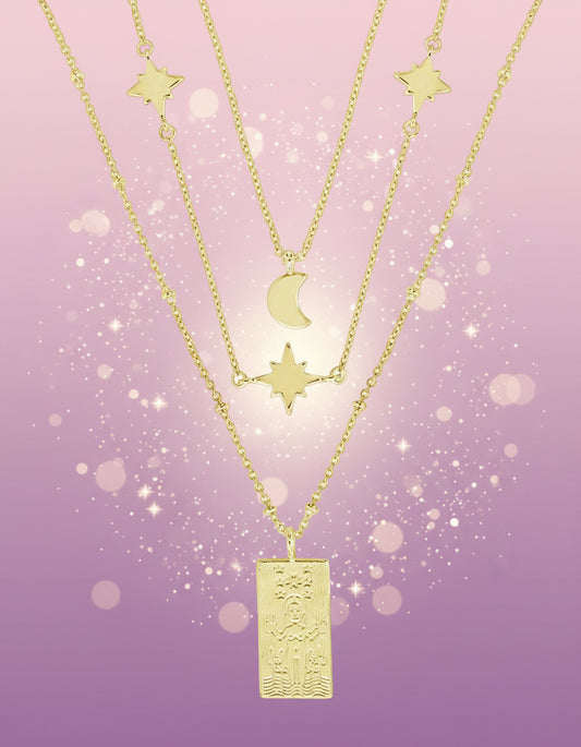 Moon, Star, & Tarot Card Layered Necklace by Sterling Forever