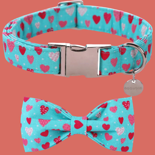 High Quality Adjustable Dog Collar with Bowtie Blue with Pink and Red Heart Pattern for Valentine's DayRegular price $32.00Regular priceUnit price / per$45.00Sale price $32.00SAVE 29%