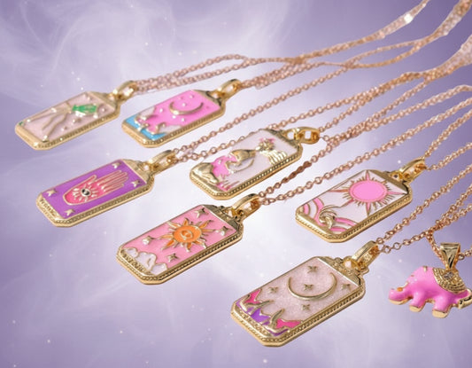Pink Punk Tarot Enamel Square Necklace for Women Gift