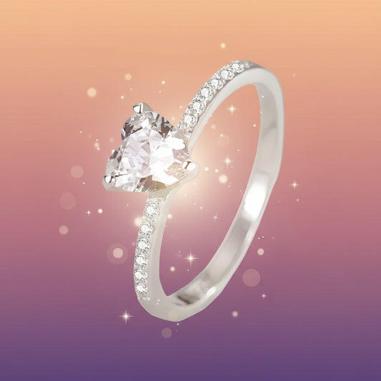 Pure Silver Heart Shaped Gemstone Ring Women's Gift for Valentine's Day, Birthday, Christmas, Holidays