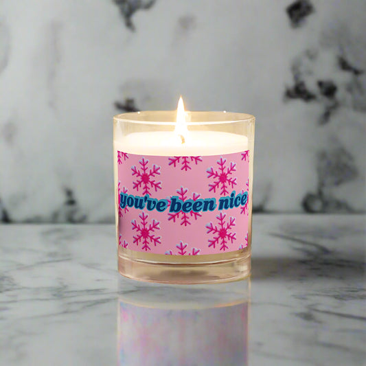 Large "you've been nice" Pink Snowflakes Giftable Christmas Glass Jar Candle for Holiday Home Decorating Soy Wax UnscentedRegular price $20.00Regular priceUnit price / per$30.00Sale price $20.00SAVE 33%