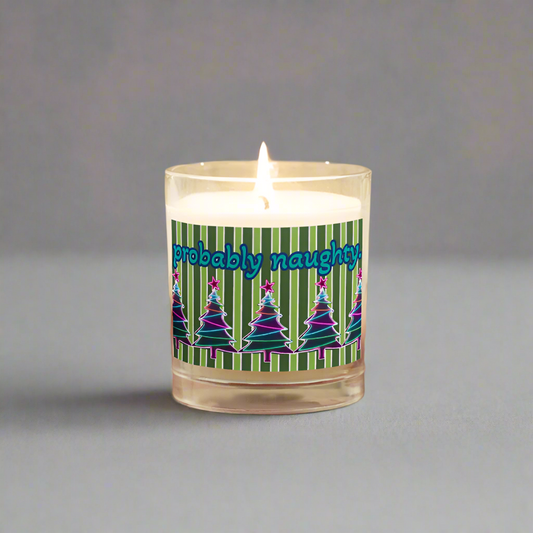 Large "probably naughty" Green Striped Giftable Neon Christmas Tree Glass Jar Candle for Holiday Home Decorating Soy Wax UnscentedRegular price $20.00Regular priceUnit price / per$30.00Sale price $20.00SAVE 33%