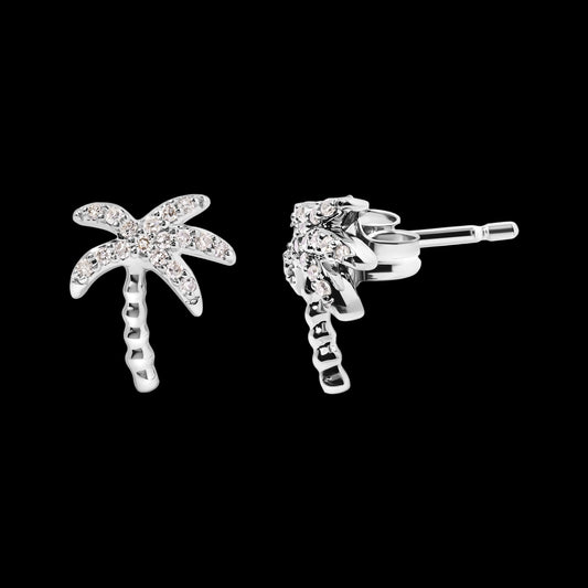 10K White Gold 1/10 Cttw Diamond Encrusted Palm Tree Stud Earrings
