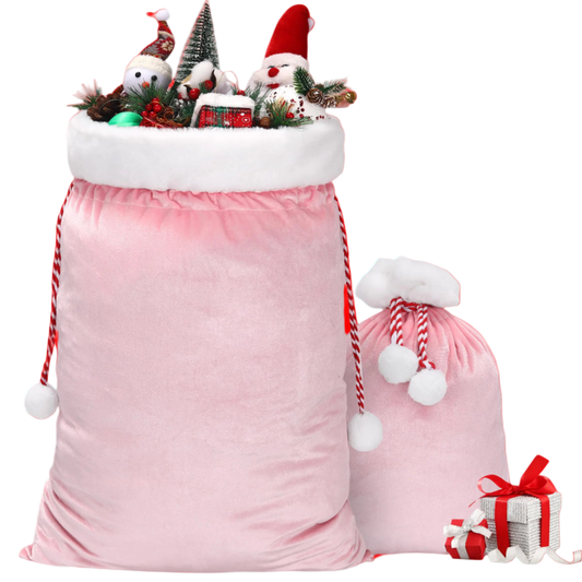 2 Pack Large and Small Christmas Pink Velvet Santa Gift Bags