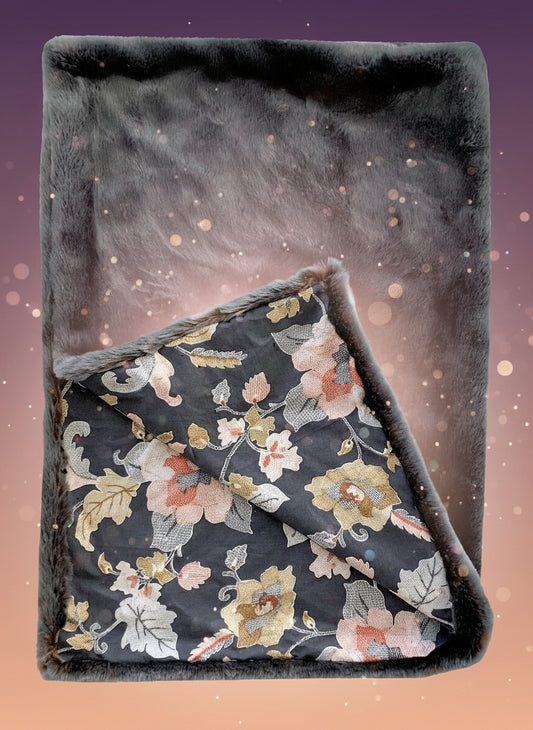 Two Tone Gray/Amber Handmade Luxury Throw With Floral Backing
