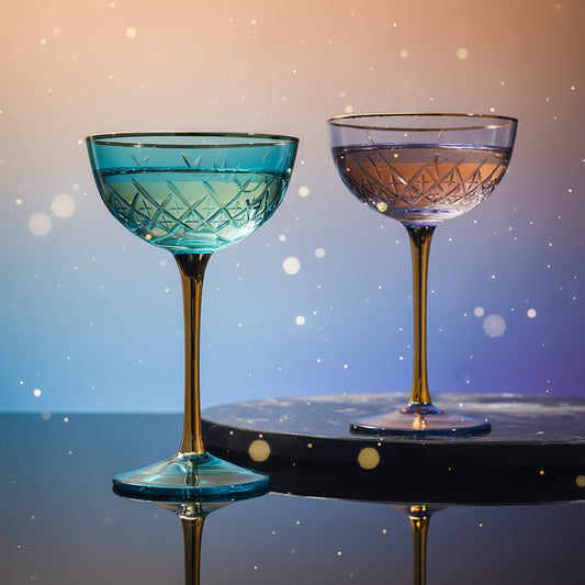 Vintage Art Deco Coupe for Champagne, Martini, Cocktails, Glasses | Set of 6 | 7 oz Classic Cocktail Glassware - Manhattan, Cosmopolitan, Sidecar, Crystal Speakeasy Style Saucer Goblets with Stems