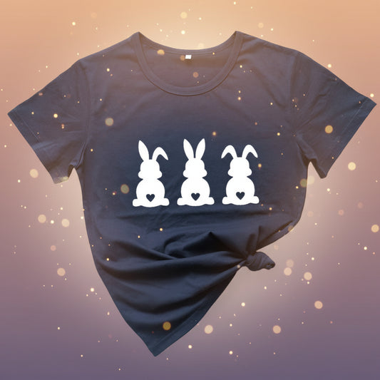 Women's Cute Easter Bunny Short Sleeve Tee Shirt Three Rabbits with Heart Tails Assorted Colors