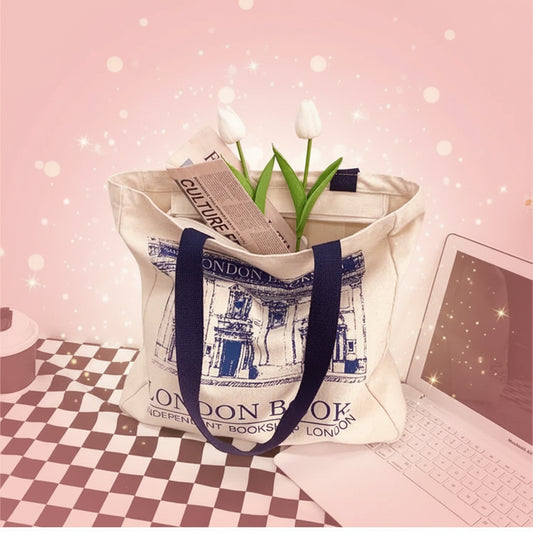 Women's London Books Print Canvas Tote Bag (Reusable)
