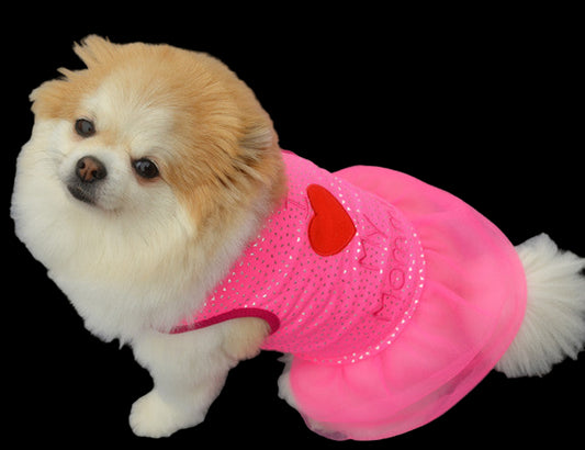 Pink or Purple Sweet Heart Embroidered Tutu Skirt Dress for Dogs Pretty Pet Clothes "I Heart My Mommy" Message