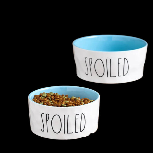 Pink or Blue "SPOILED" Pet Food and Water Bowls Ceramic for Cats Dogs Pet Supplies