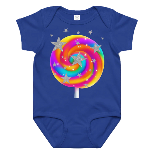 Rainbow Candy Glittering Stars Baby Jersey Bodysuit in Multiple Colors