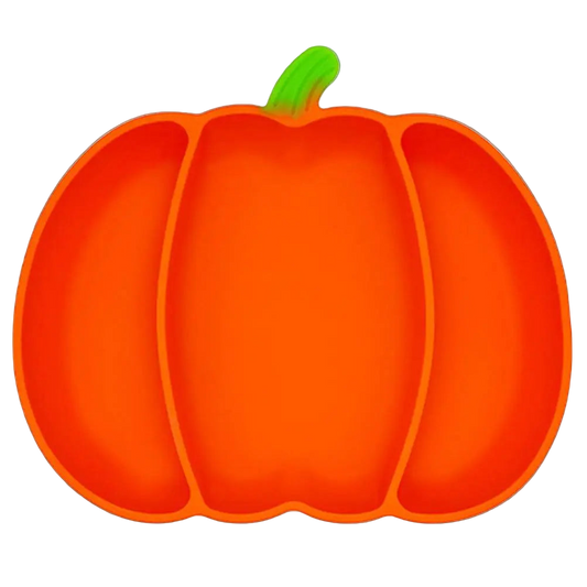 Pumpkin Shaped Silicone Suction Plate-3 Compartments Divided Plate Unbreakable Feeding Plate
