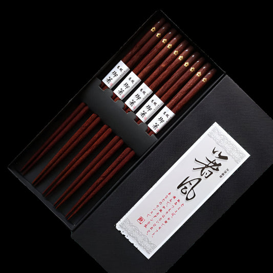 Sophisticated High-End Wooden Chopsticks Gift Box for Sushi Lovers with Gold Flower Embellishment (5 Pair Set)