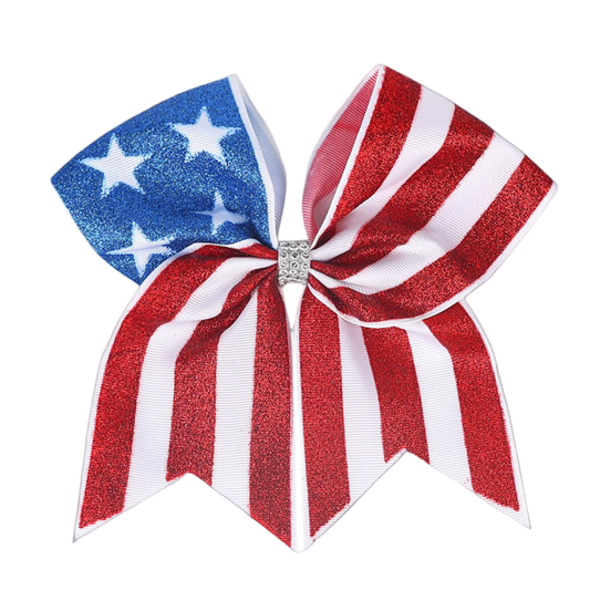 Sparkling Center Red, White, and Blue American Flag Patriotic Hair Bow for Girls 4th of July Parties