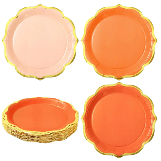 30 Pcs. Orange Paper Plate Gold Foil Scalloped Disposable Plate Retro Dinner Plate For Fall Thanksgiving Party 9 Inch Table Decor
