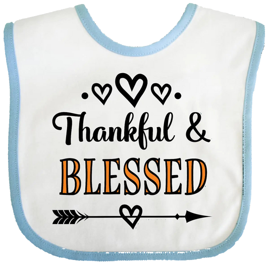 Thanksgiving Greeting Thankful Blessed Baby Bib White and Blue