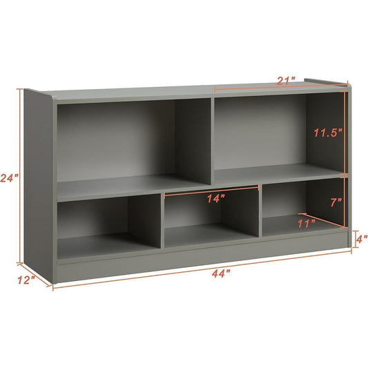 Toy Organizers and Storage, 5-Section Kids Bookshelf for Organizing Books Toys, School Classroom Wooden Storage Cabinet for Children'S Room, Playroom, Nursery (Grey)