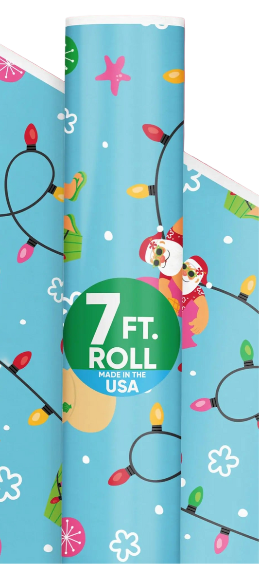 Tropical Santa Christmas Wrapping Paper for Festive Beachy Holiday Cheer Hawaiian Gifts