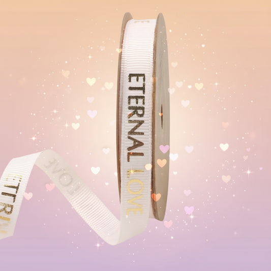 Beautiful "Eternal Love" Shiny Gold Lettering Gift Wrapping Ribbon in Various Colors and Sizes