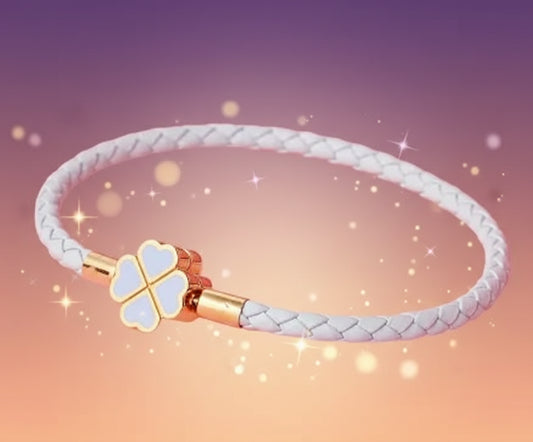 Assorted Colors Four-Leaf Clover Lucky Braided Leather Strap Bracelet with Titanium Charm