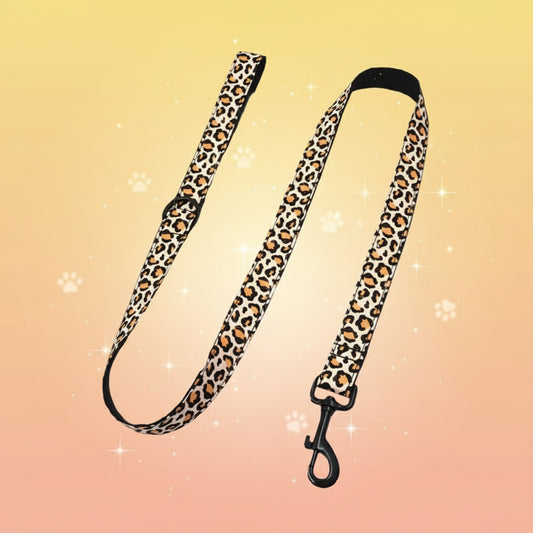 Fashionable Leopard Print with Black Buckles Collar and Leash Set for Dogs of All Sizes