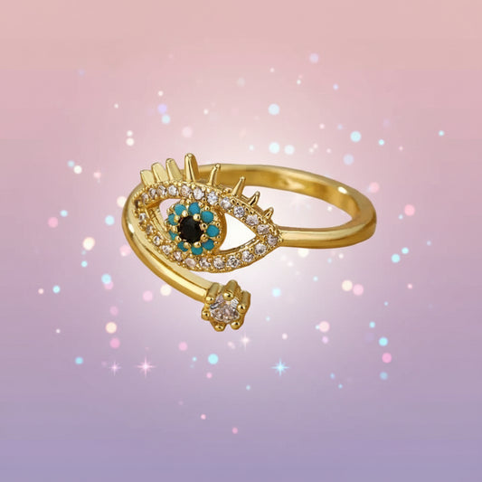 Evil Eye Rings for Women Stainless Steel Zirconia Pave Ring Adjustable Wrap