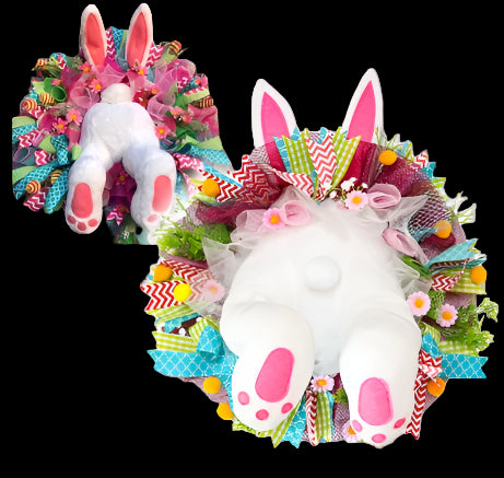 Colorful Easter Bunny Tail Fuzzy Rabbit Ribbon Wreath for Spring Home Decorating Multiple Styles