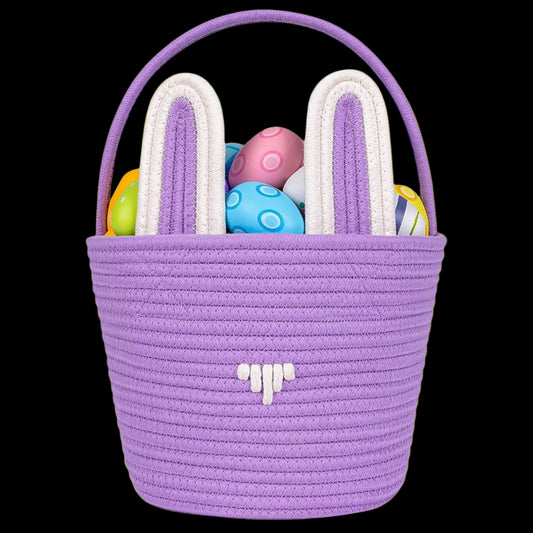 Colorful Woven Rabbit Ear Easter Basket for Egg Hunts and Children's Party Toys and Candy