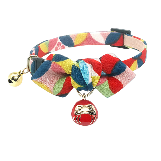 Colorful and Stylish Soft Crepe Fabric, Diamond Shaped Adjustable Bowtie Kitten/Cat Collar with Bell and Lucky Charm