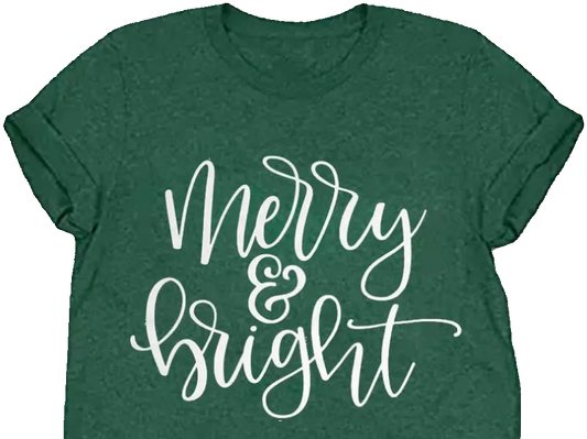 Christmastime Women's Green Merry and Bright Holiday Season Tee Shirt