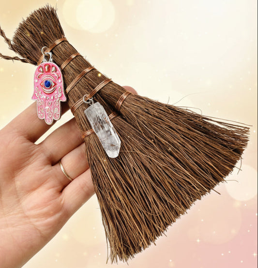 Mini Witches Broom with Clear Quartz Crystal | Altar Cleansing