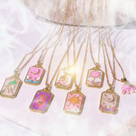 Pink Punk Tarot Enamel Square Necklace for Women Gift