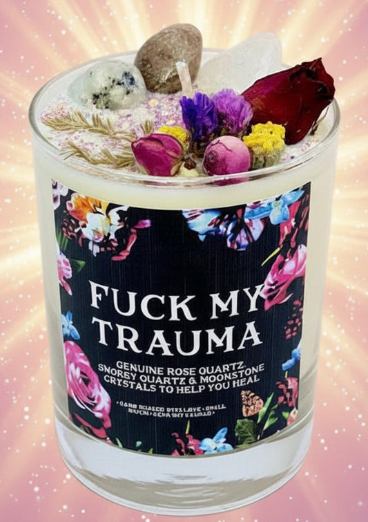 F-K My Trauma Crystal Candle | Dried Flowers | Releasing Anxiety and Healing