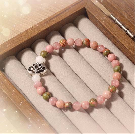 Rhodonite Crystal Bead Bracelet | Seven Pulse Lotus | Protection