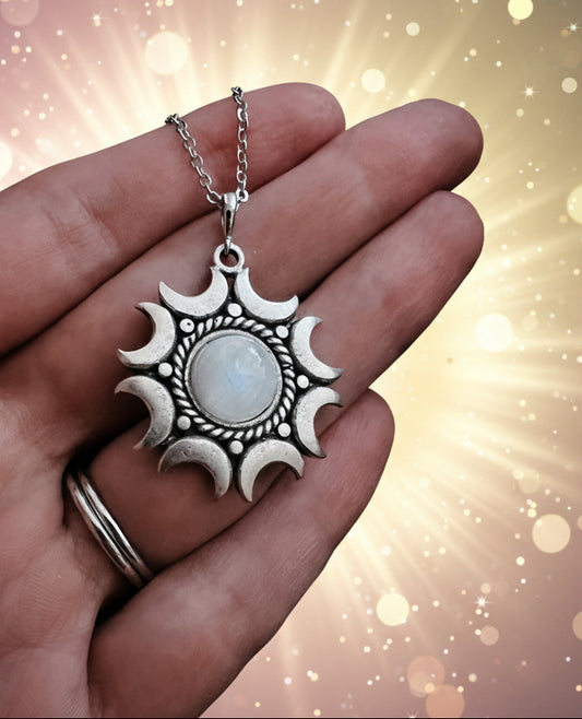 Lunar Witch Necklace | Rainbow Moonstone Pendant