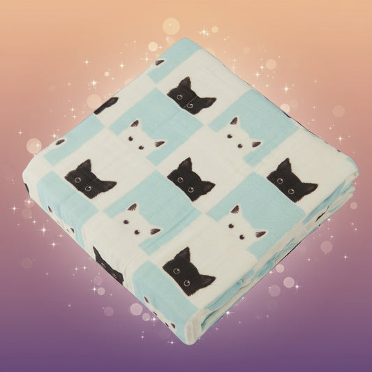 Peek-A-Boo Cats and White Bamboo Muslin Newcastle Blanket