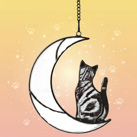 Tabby or Shorthair-Stained Glass Suncatcher Memorial Gift, Sympathy Gift for Cat Loss or Cat Lovers