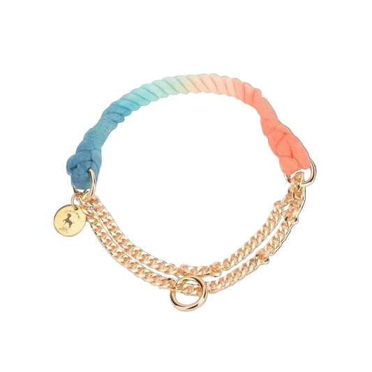 Cotton Rope Collar With Lightweight Gold Chain - Sunset